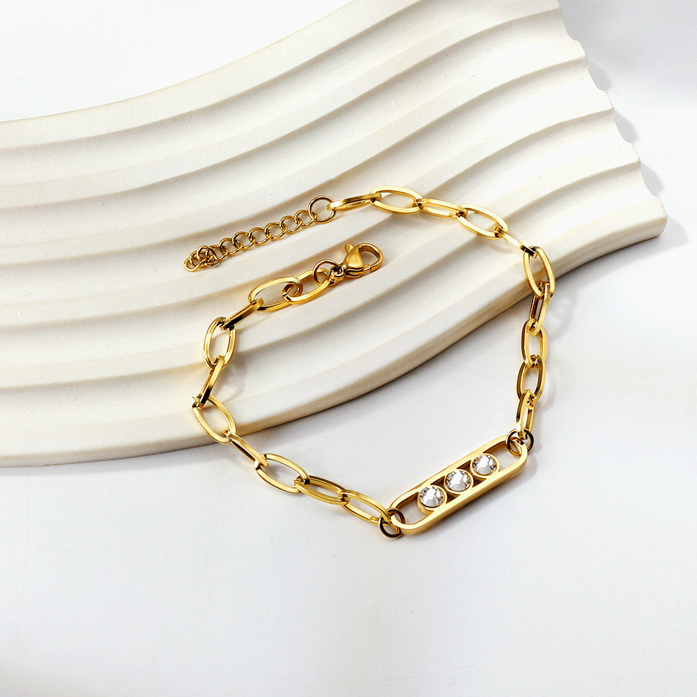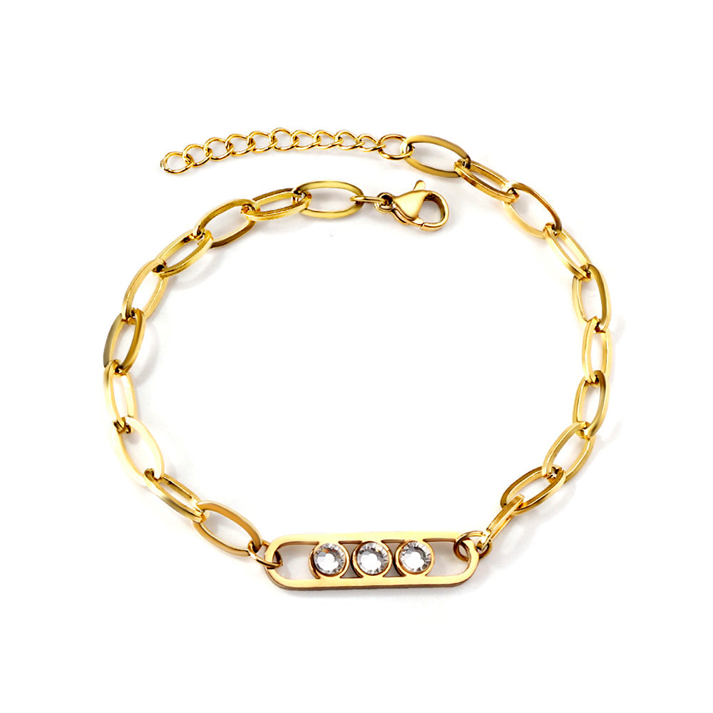 Long Accessories with 3 White Diamonds Soft Bracelet 20+3cm Golden