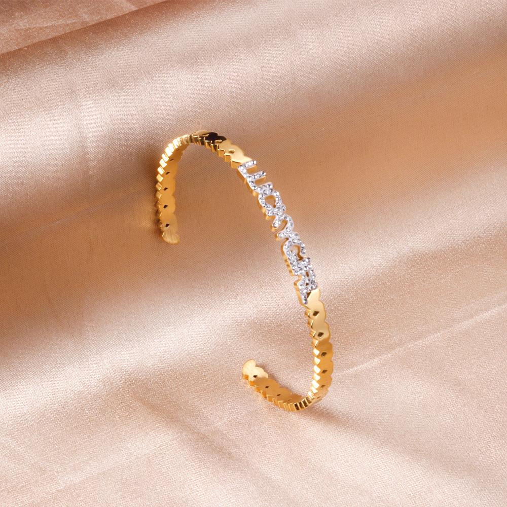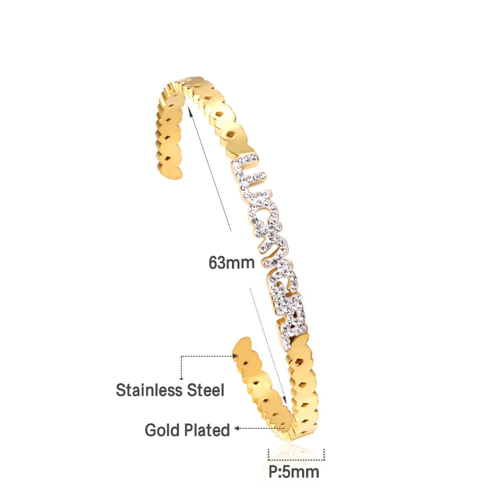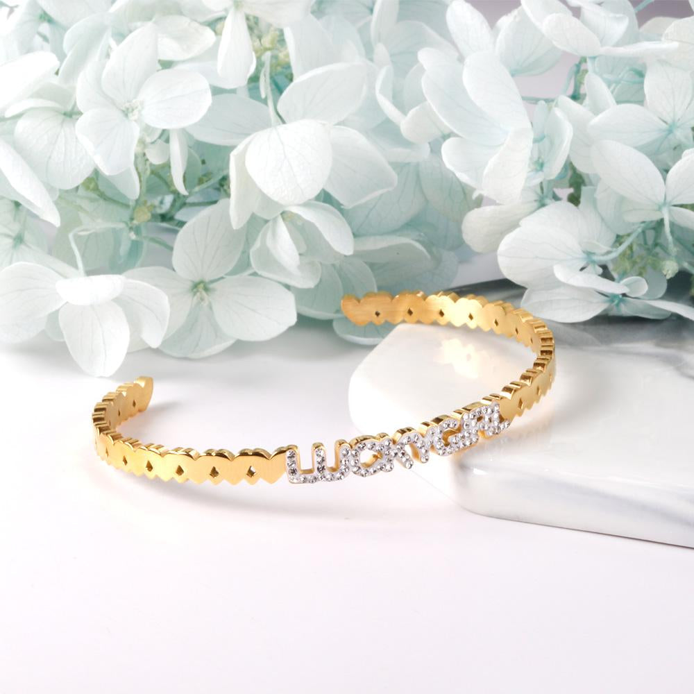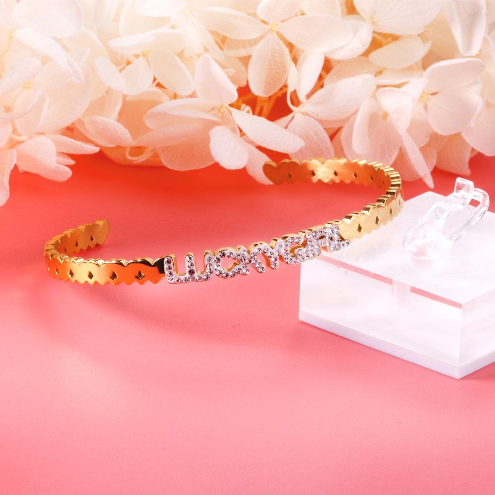 Lucky Gift For Friends Open Bracelets Luxury Women's Bangles Gold Color With Shiny Zirconia Stone Office Dailywear