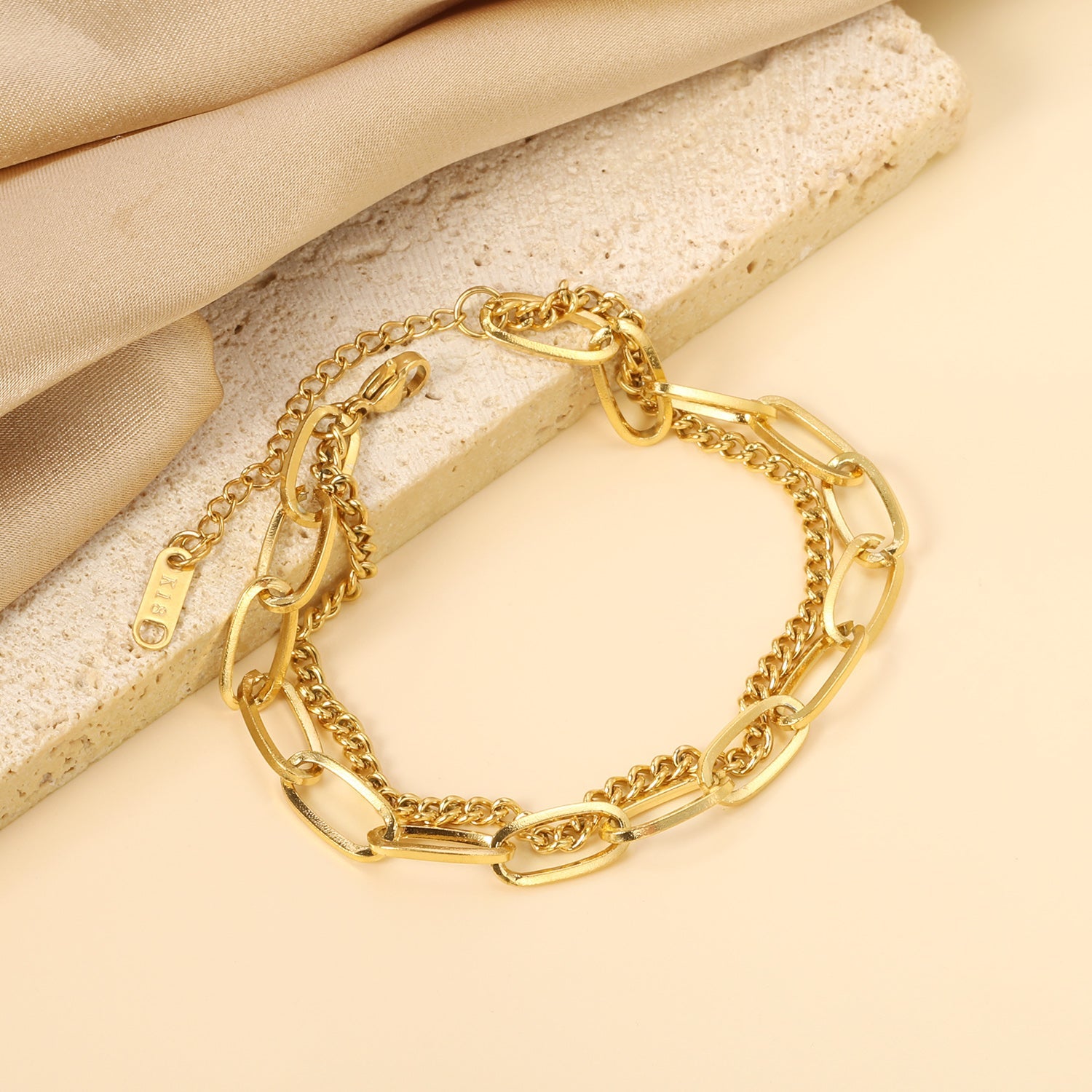 Matching Chain Double Chain Bracelet 18+18+5cm Gold Color