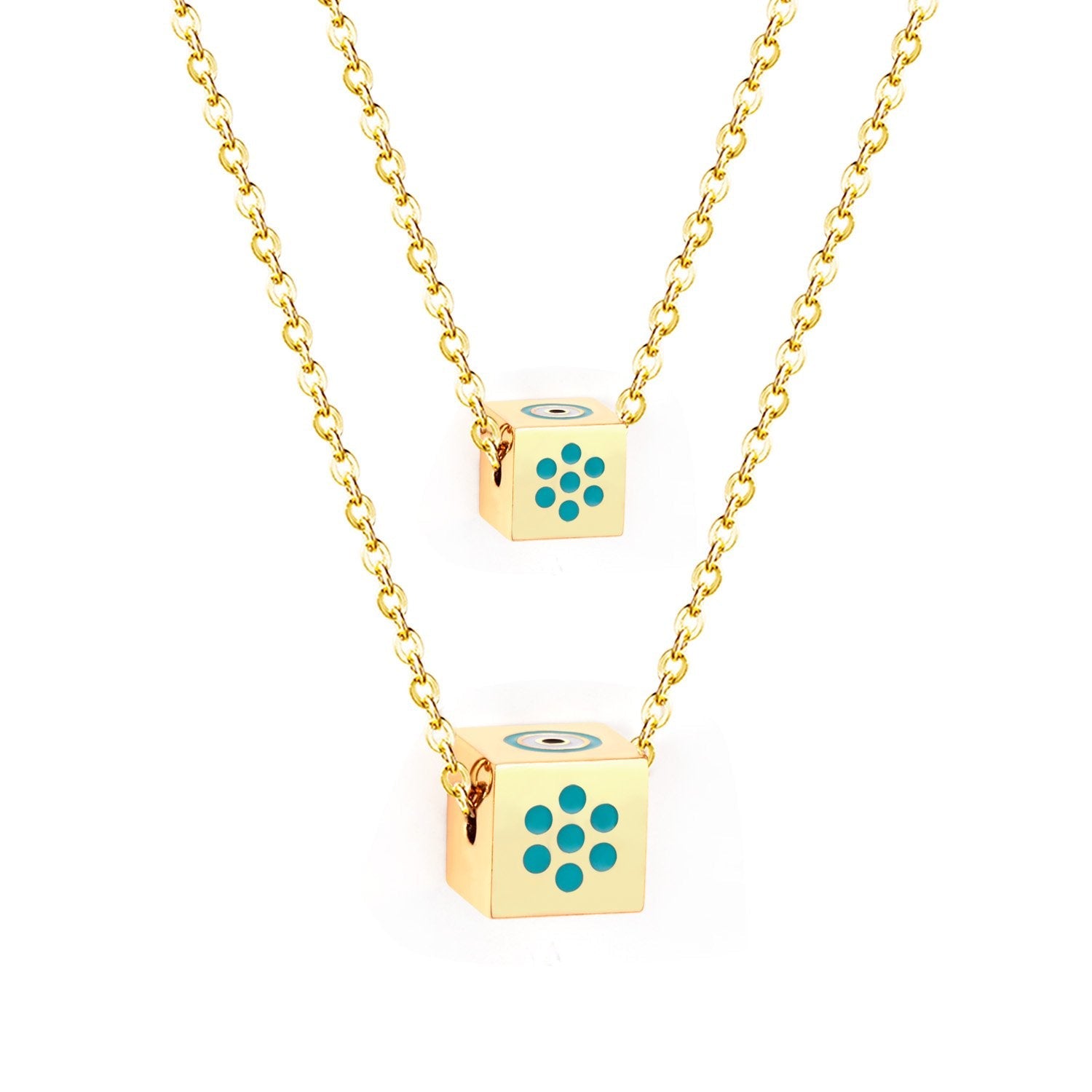 Men And Women Double Chain Necklace Stainless Steel Gold Silver Color Fashion Block Pendant Necklace Accessories