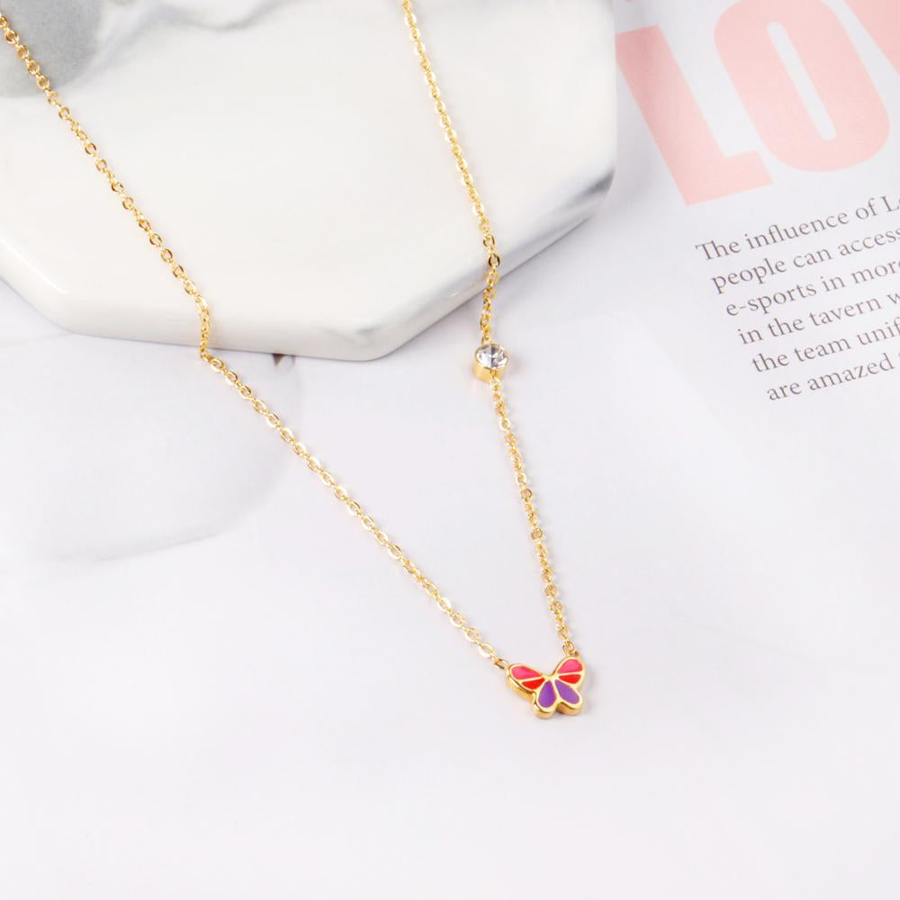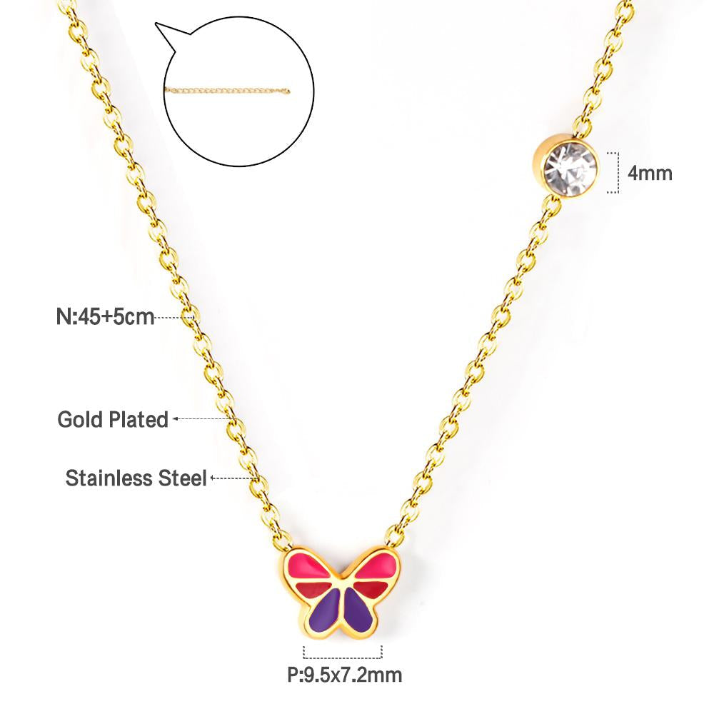 Mix Color Butterfly Football Stainless Steel Pendant Necklace For Women Free Chain With Crystal Necklace Jewellry