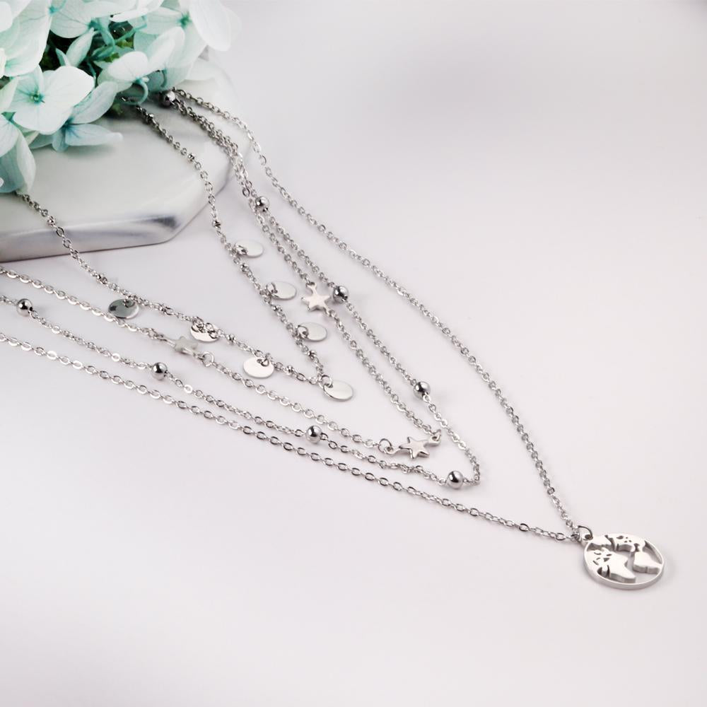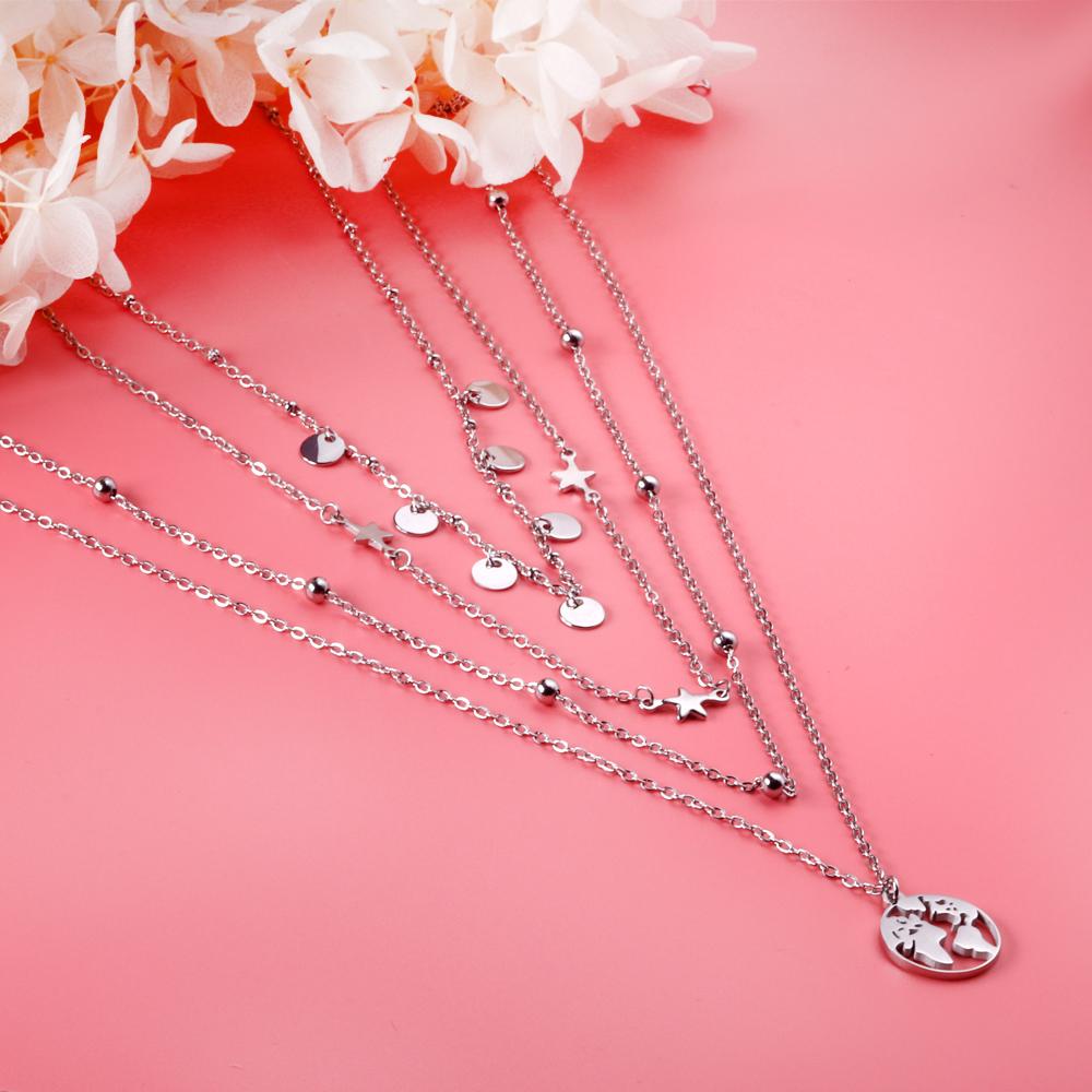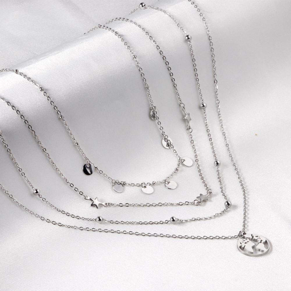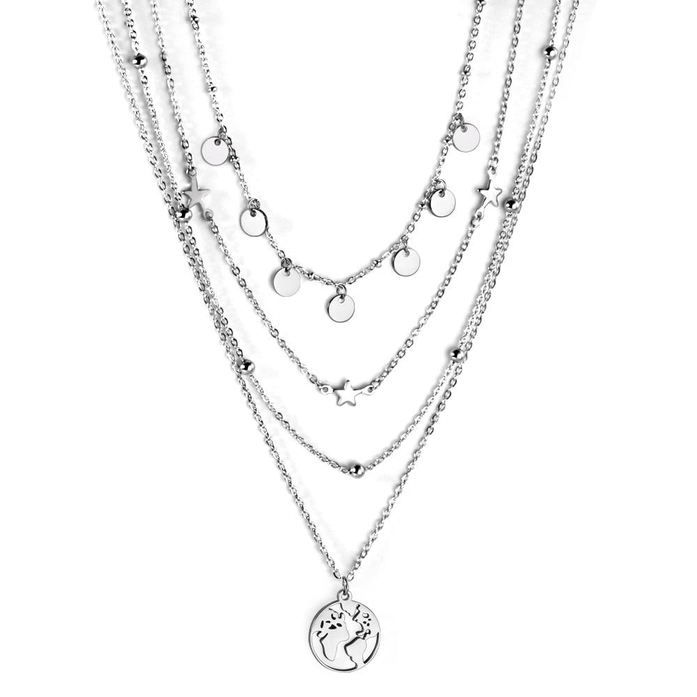 Multi-Layer Chain Necklace Bohemia Choker Beach Style Vintage Collier Stainless Steel No Fade Star Round Charm