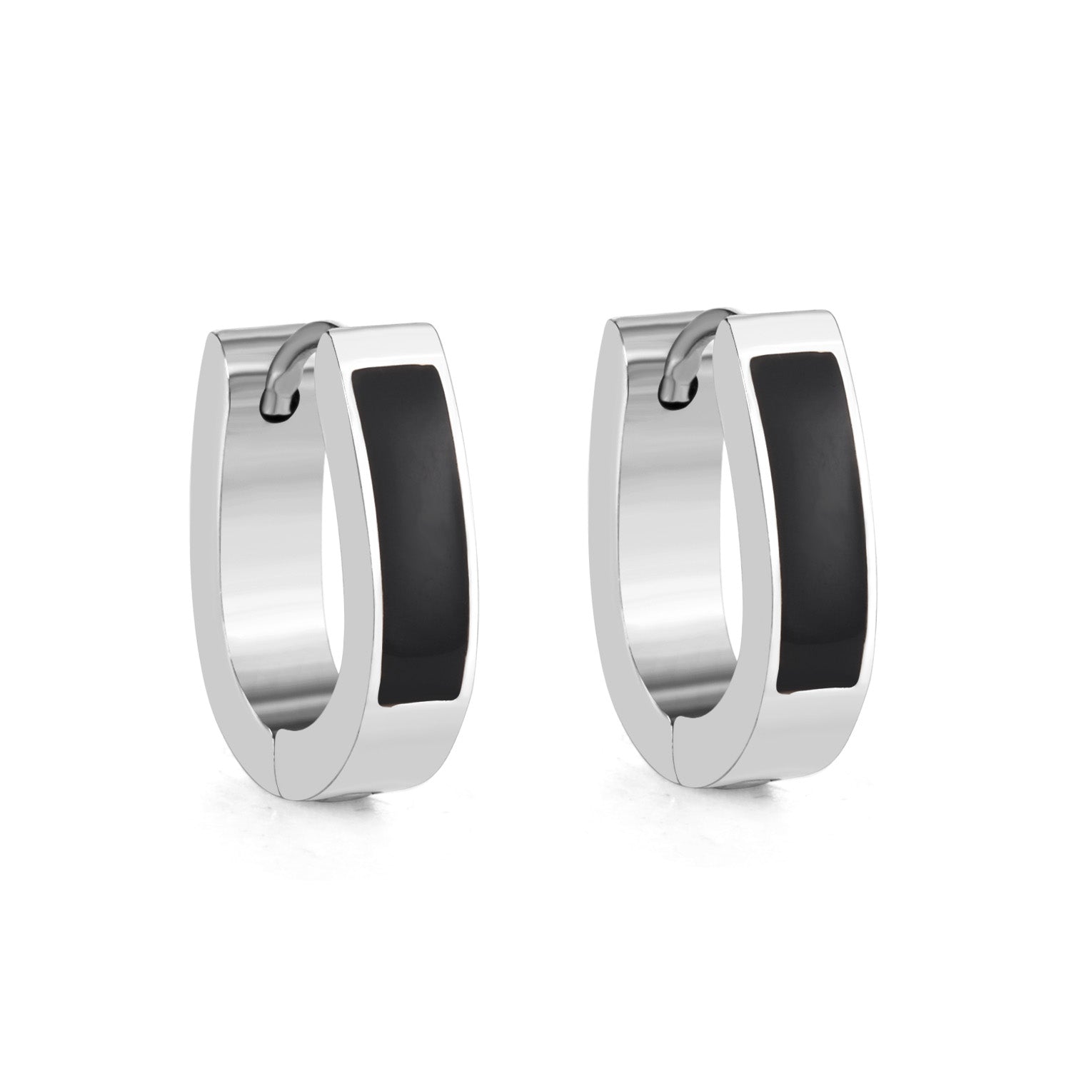 Oval Ear Clips with Black & White Drip Oil 13.5*15.5mm