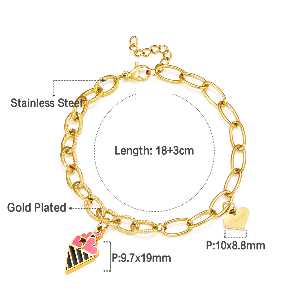 Cone Ice Cream Mixed Color + Heart-shaped Accessories Bracelet