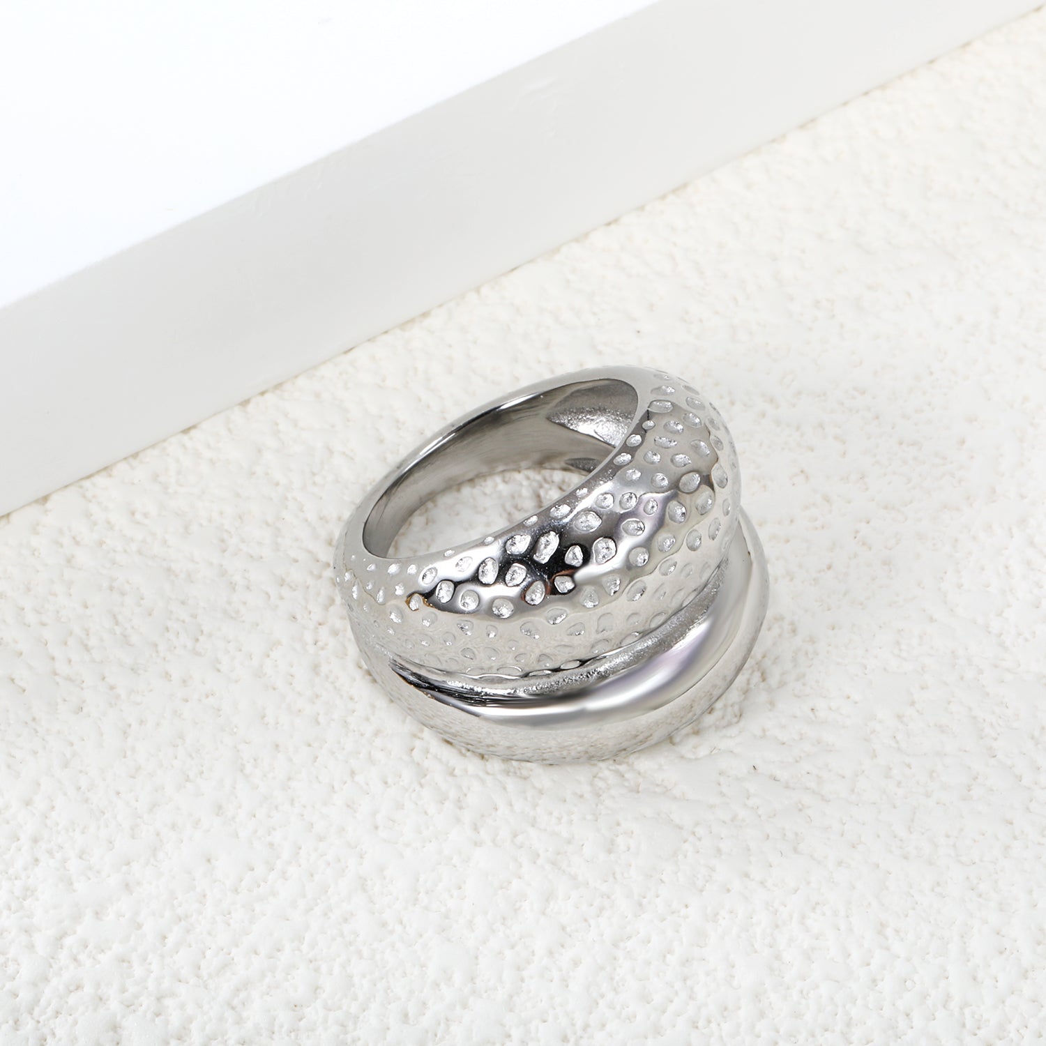 PVD plating process 18k gold stainless steel double layer hammered glossy ring stainless steel ring