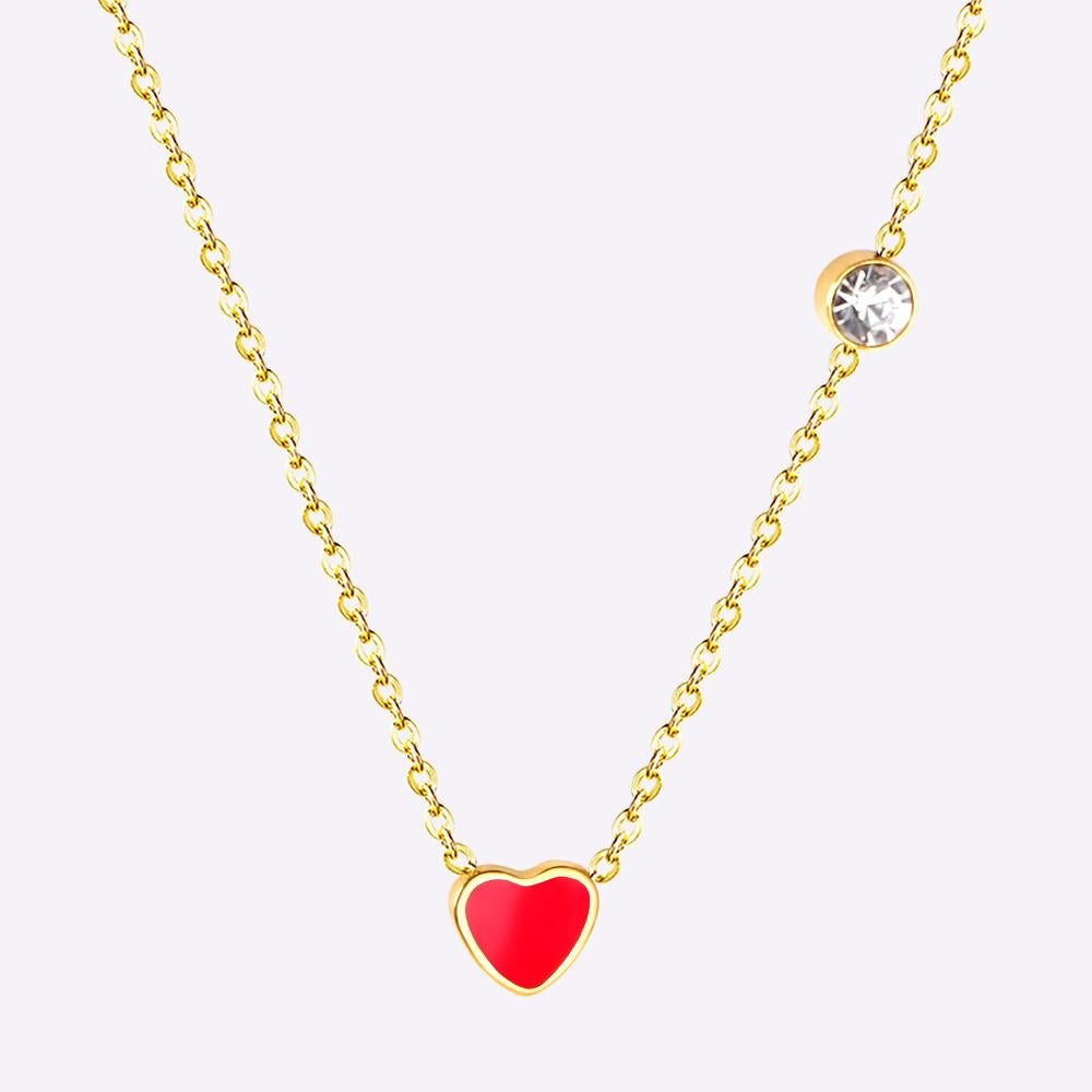 Red Heart Pendant With Crystal Stainless Steel Chain Necklace For Girls Fashion Party Jewellry Accessories 2021 Hot