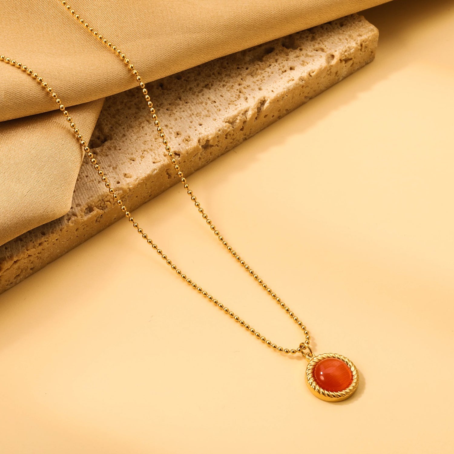 Round twisted edge with red cat's eye pendant 11.6mm Necklace 45+5cm