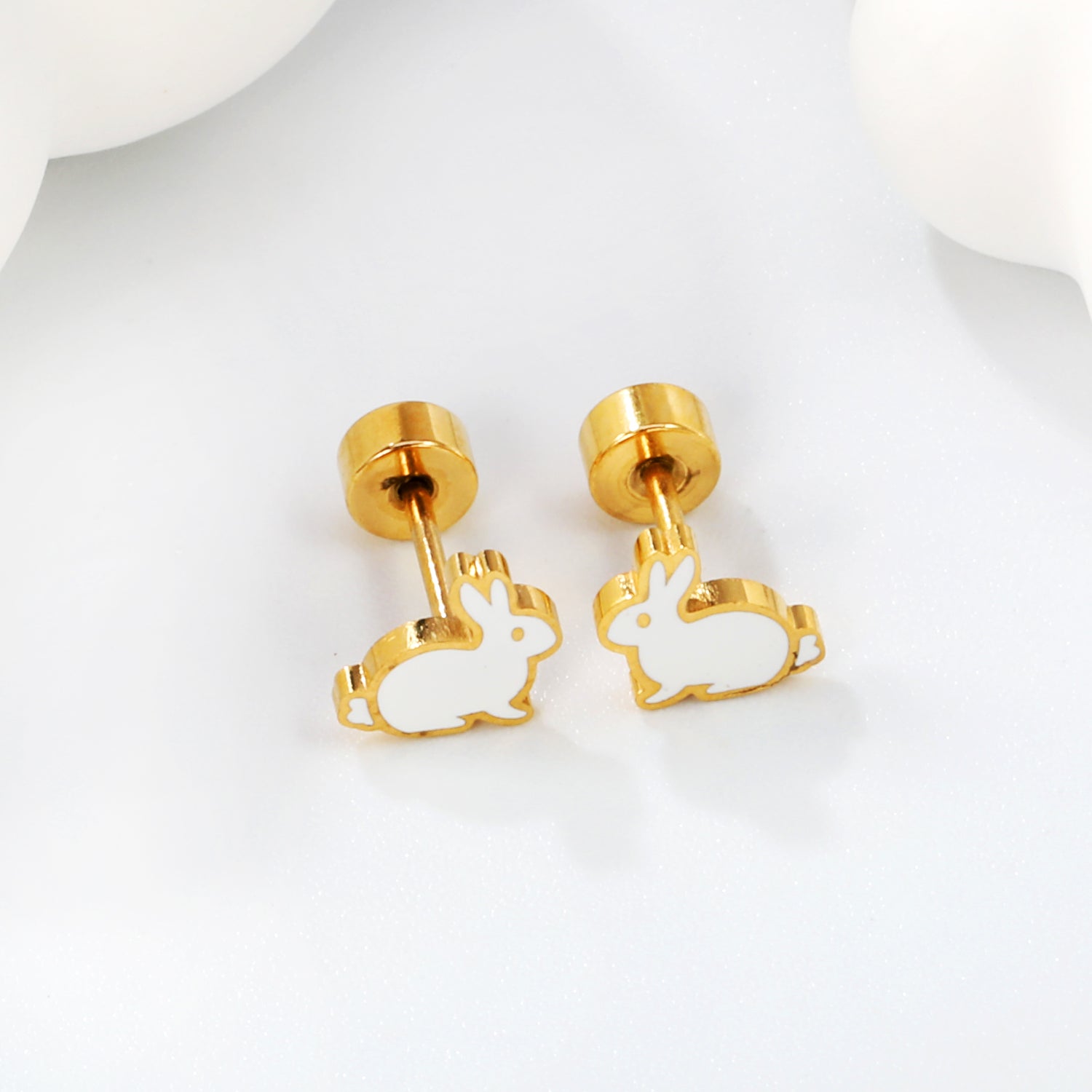 Screw plug 0.8*8mm needle bunny with white drip earrings 7*6.7mm gold color