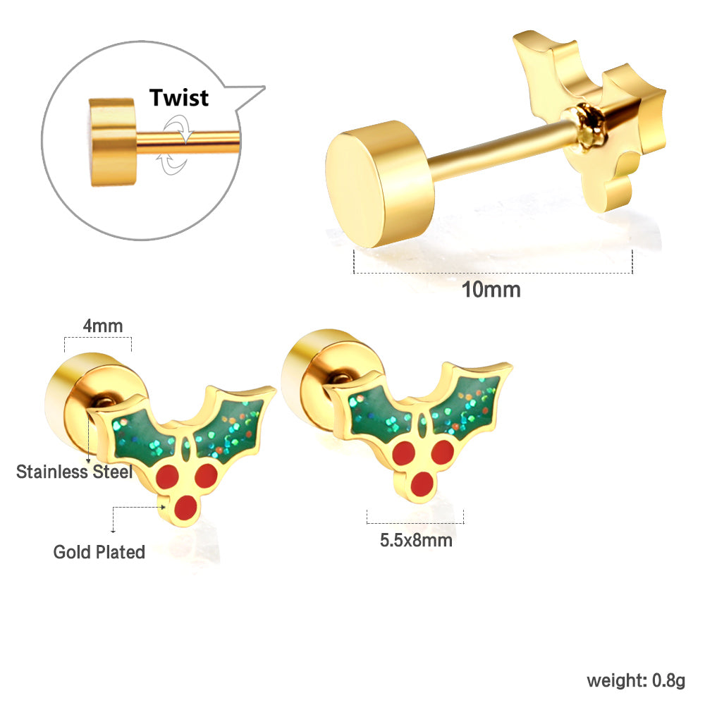 Screw-plug Christmas Fruit Mixed Color Stud Earrings