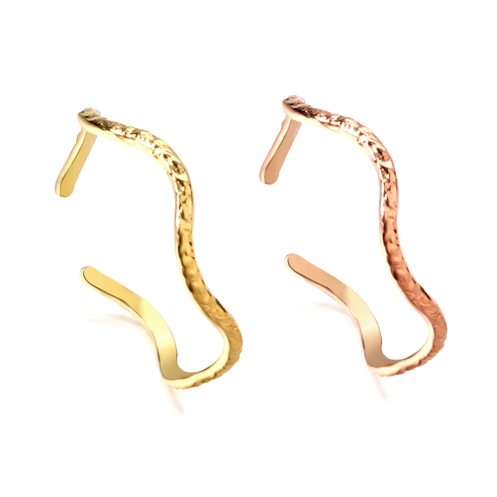 Stainless Steel 18K Gold Irregular Whacked Wave Open End Ring