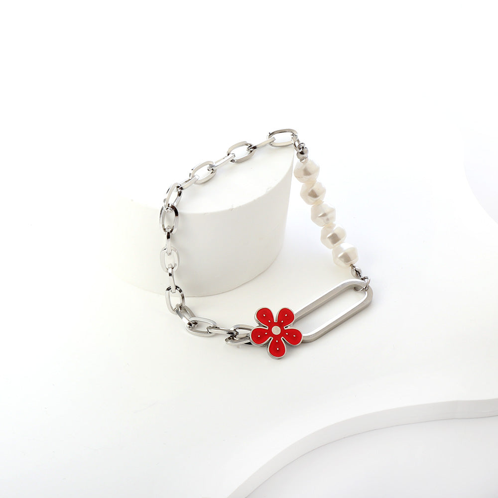 New 5 White Pearl+Red Peach Blossom Accessories Bracelet