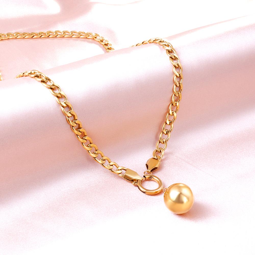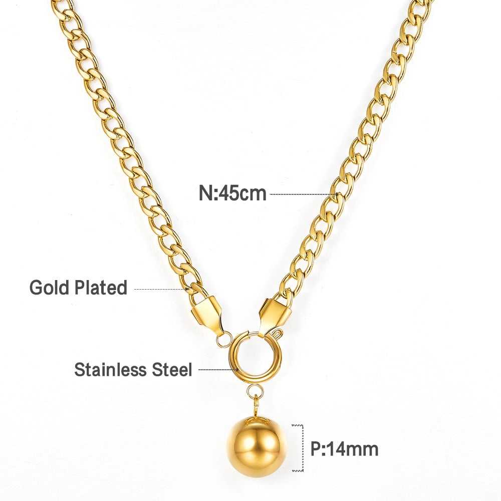 Stainless Steel Ball Charm Necklace for Women Gold Color Cuban Link Chain Choker Minimalist Girls Design Neck Collar
