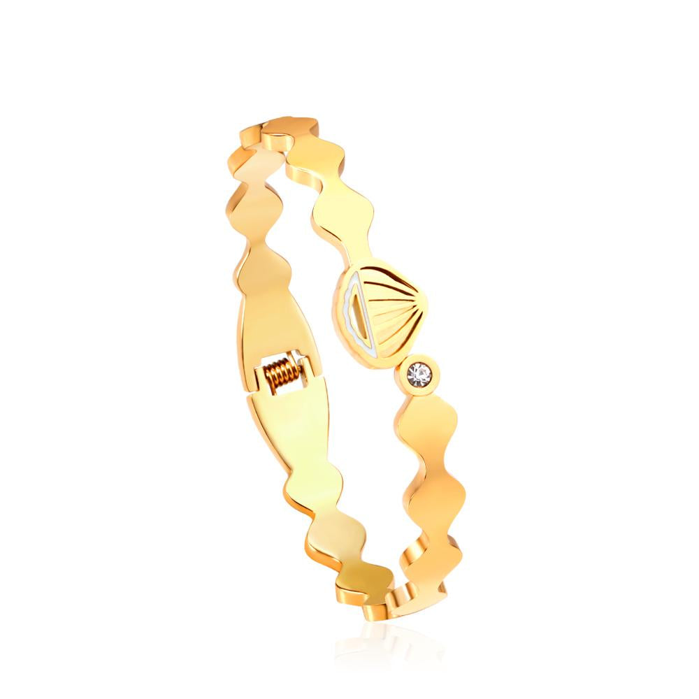 Stainless Steel Bangles On Hand Mental Bracelets For Women Shell Printed Rhinestone Bangles Customize Bangles Gifts