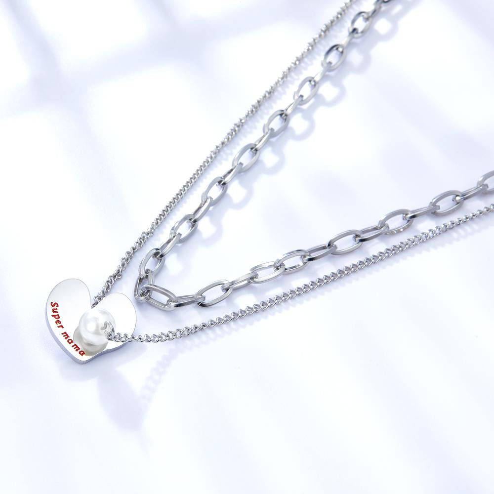 Stainless Steel Heart Imitation Pearl Pendant Necklace Collars Trendy Gold Color Double Chains Necklace Wedding