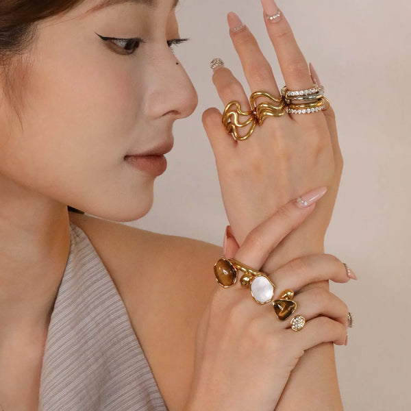 18k gold plated Premium Zircon&Natural Resins Stainless Steel Rings Wholesale (MOQ 12+) | Hypoallergenic Fashion Rings 🌍 | Tarnish-Free