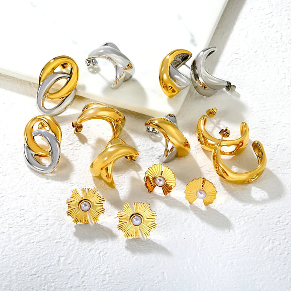 18K Gold PVD Stud Earrings Wholesale (MOQ 12+) | Stainless Steel Hypoallergenic 🌍 | Trendy Circle Huggies & Statement Hoops