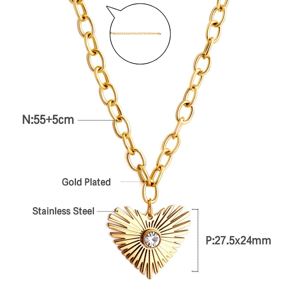 Stainless Steel Jewelry Thick Link Chains For Woman Sculpture Big Heart Punk Collares Boho Trendy Necklaces