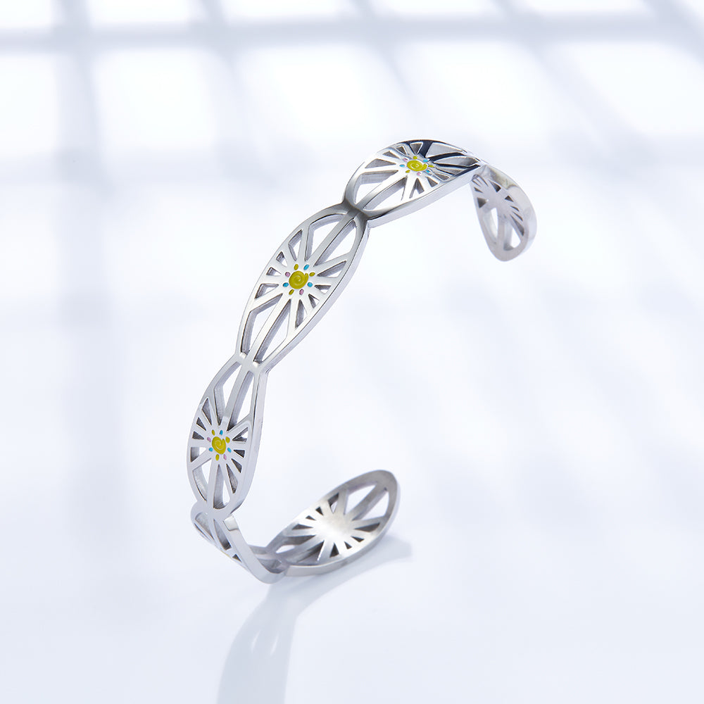Stainless Steel Mixed Color Sun Hard Bracelet For Women