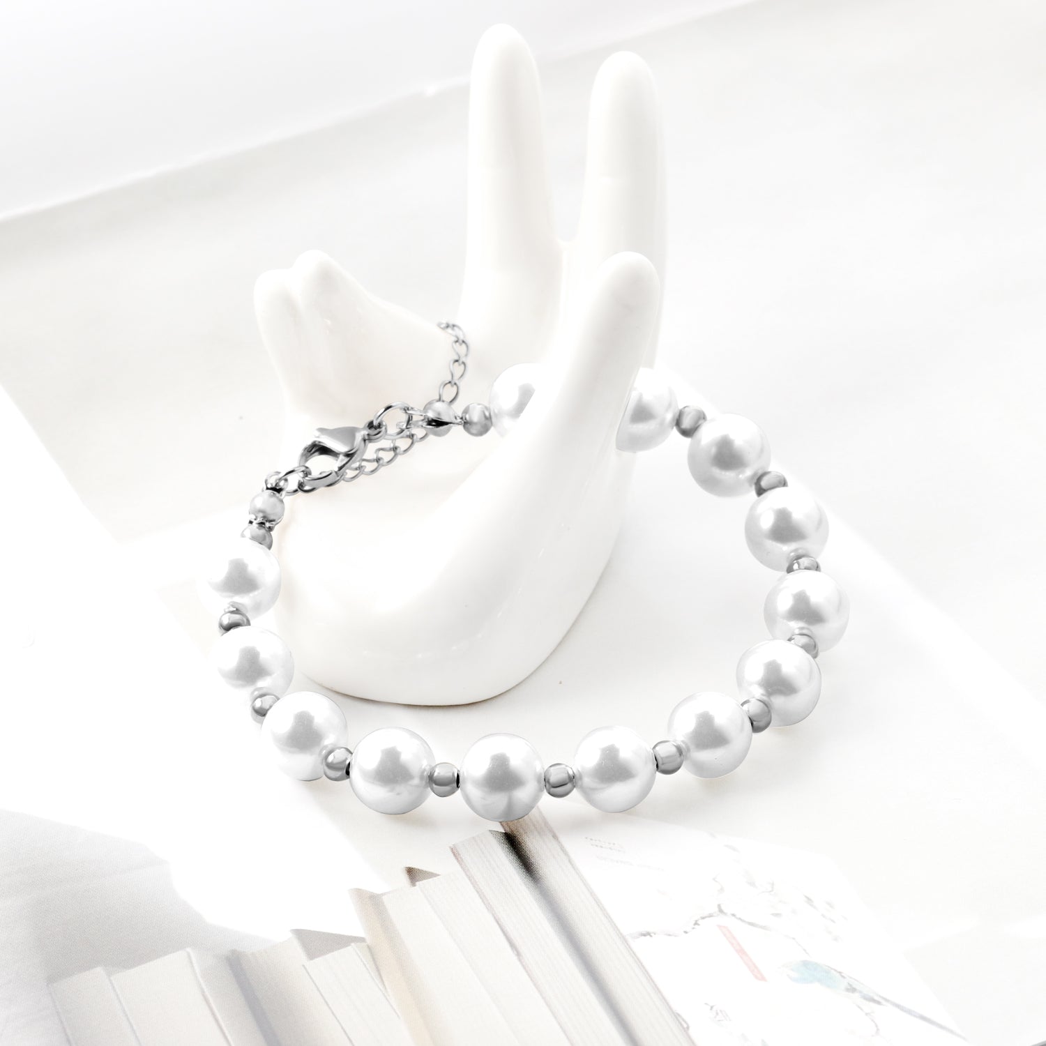Expertly crafted with a blend of steel and gold pearls, this elegant bracelet features steel beads and a secure 10mm clasp. The 20+5cm length ensures a comfortable fit. Perfect for adding a touch of sophistication to any outfit.