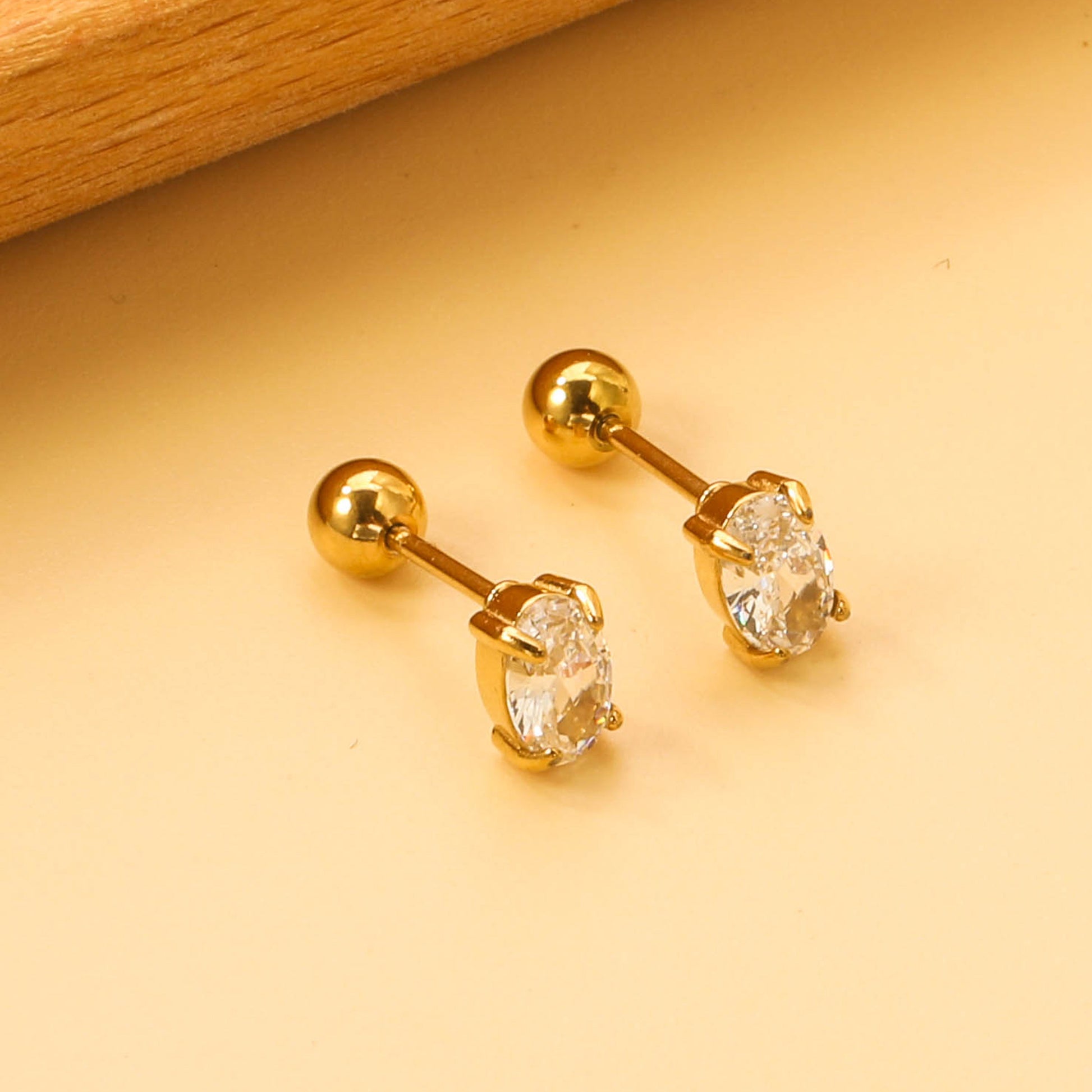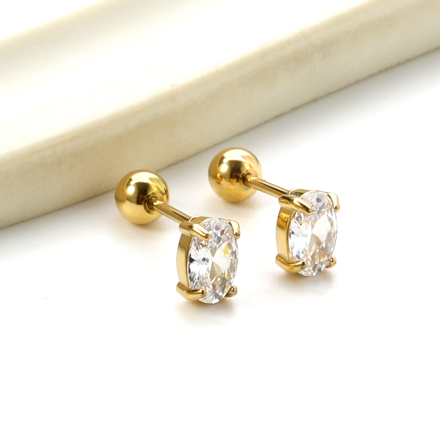 Steel ball screw-in oval earrings with white diamonds 4*6mm