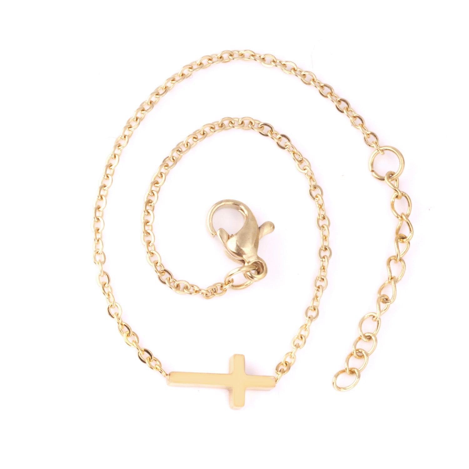 Steel color gold cross pendant accessories bracelet without diamonds 12mm 15+3cm