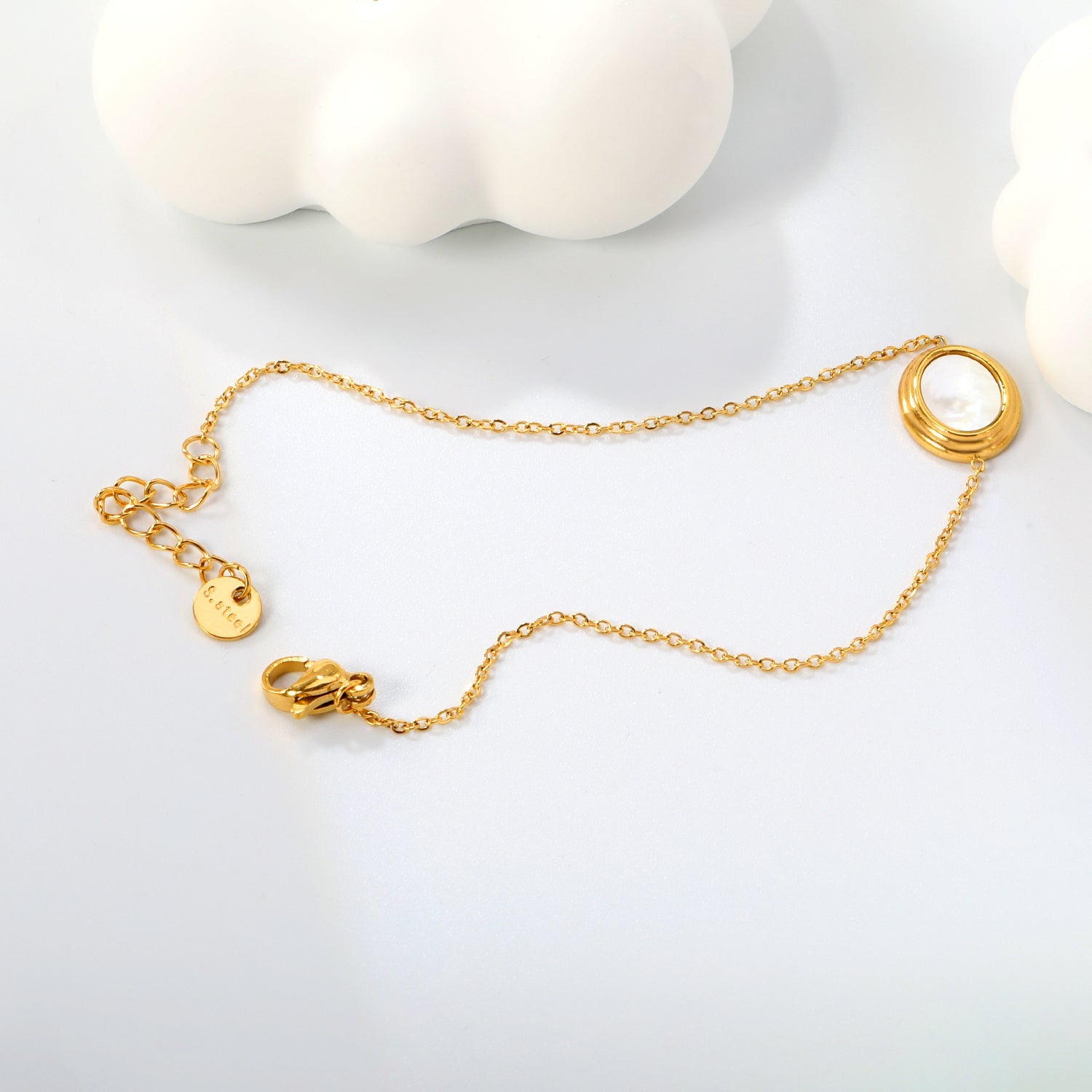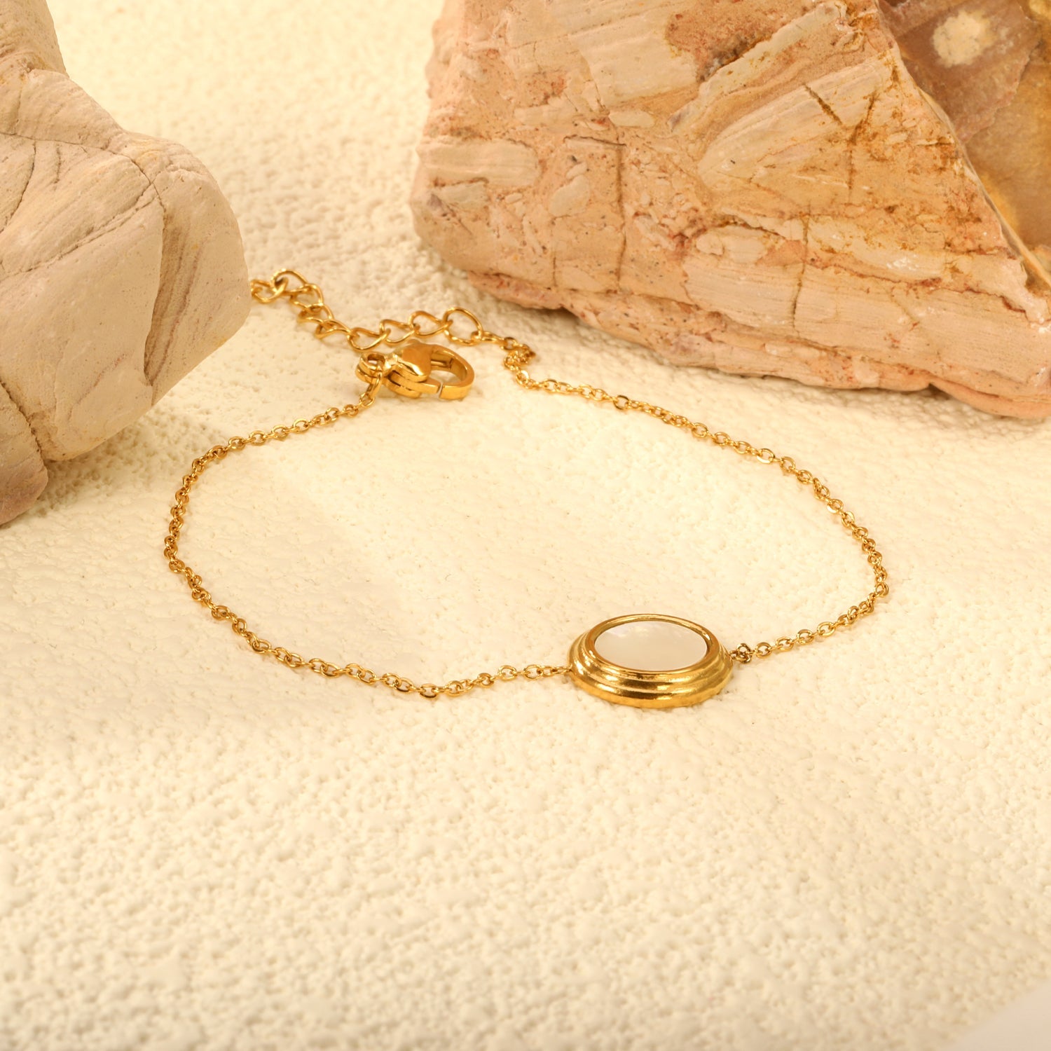 Steps Oval with White Shell Bracelet 0.3 Cross Chain 17+3cm+6mm Round Plaque Gold Color