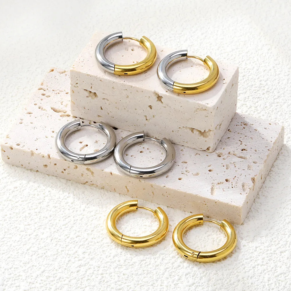 18K Gold PVD Stud Earrings Wholesale (MOQ 12+) | Stainless Steel Hypoallergenic 🌍 | Trendy Circle Huggies & Statement Hoops