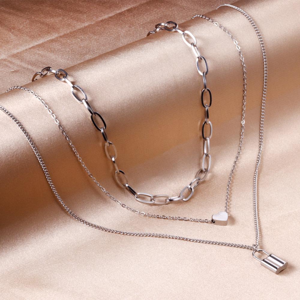 Thick Chain Necklace For Girls Cool Trendy Decor Steel Necklace For Women Cute Heart Lock Pendant Collier Aesthetic