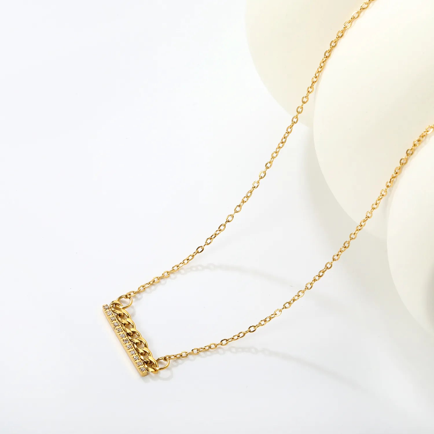 Wholesale 20x3mm Chain & 20x2mm Bar Pendant with Zirconia | Industrial Chic Necklace Set | 42+5cm Gold Stainless Steel