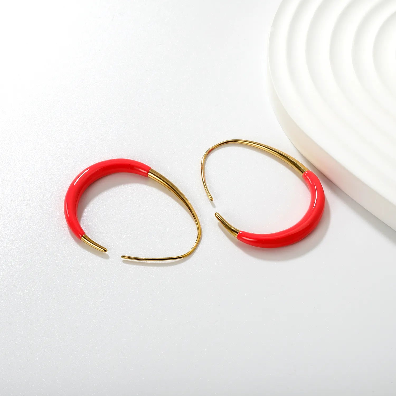 Wholesale 29x38.2mm Egg Shape Enamel Earrings | Red & Blue Drip Glaze Design | Gold Stainless Steel Statement Earrings