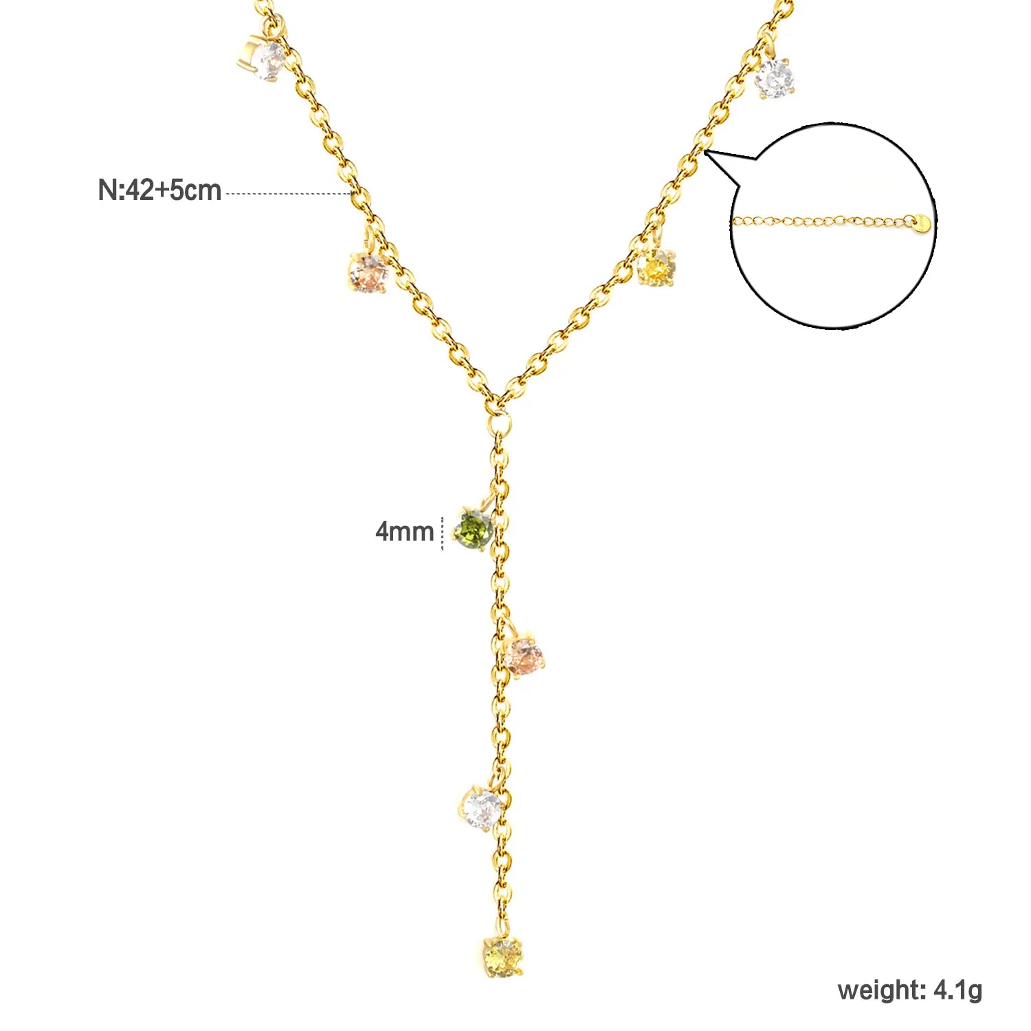 Wholesale 4mm Multi-Color Zirconia Fringe Necklace | 42+5cm Gold Rope Chain | Party & Festival Jewelry Set