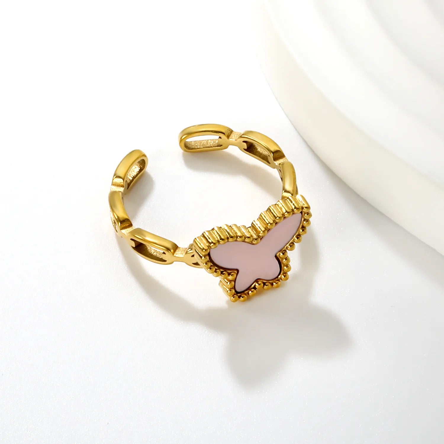 🦋 Wholesale Acrylic Butterfly Ring | Mirror Finish Colorful Design | 10.7mm High Size 7 | Gold Plated Fashion Jewelry