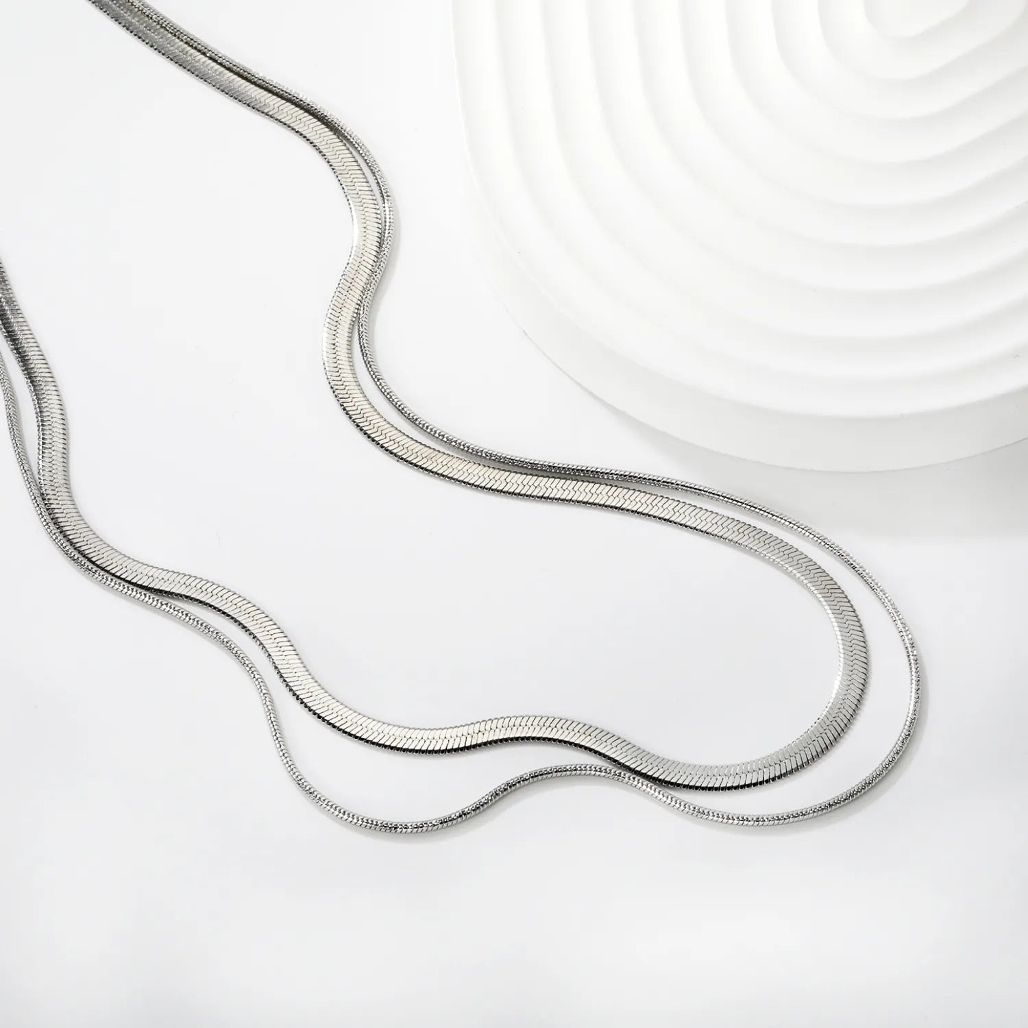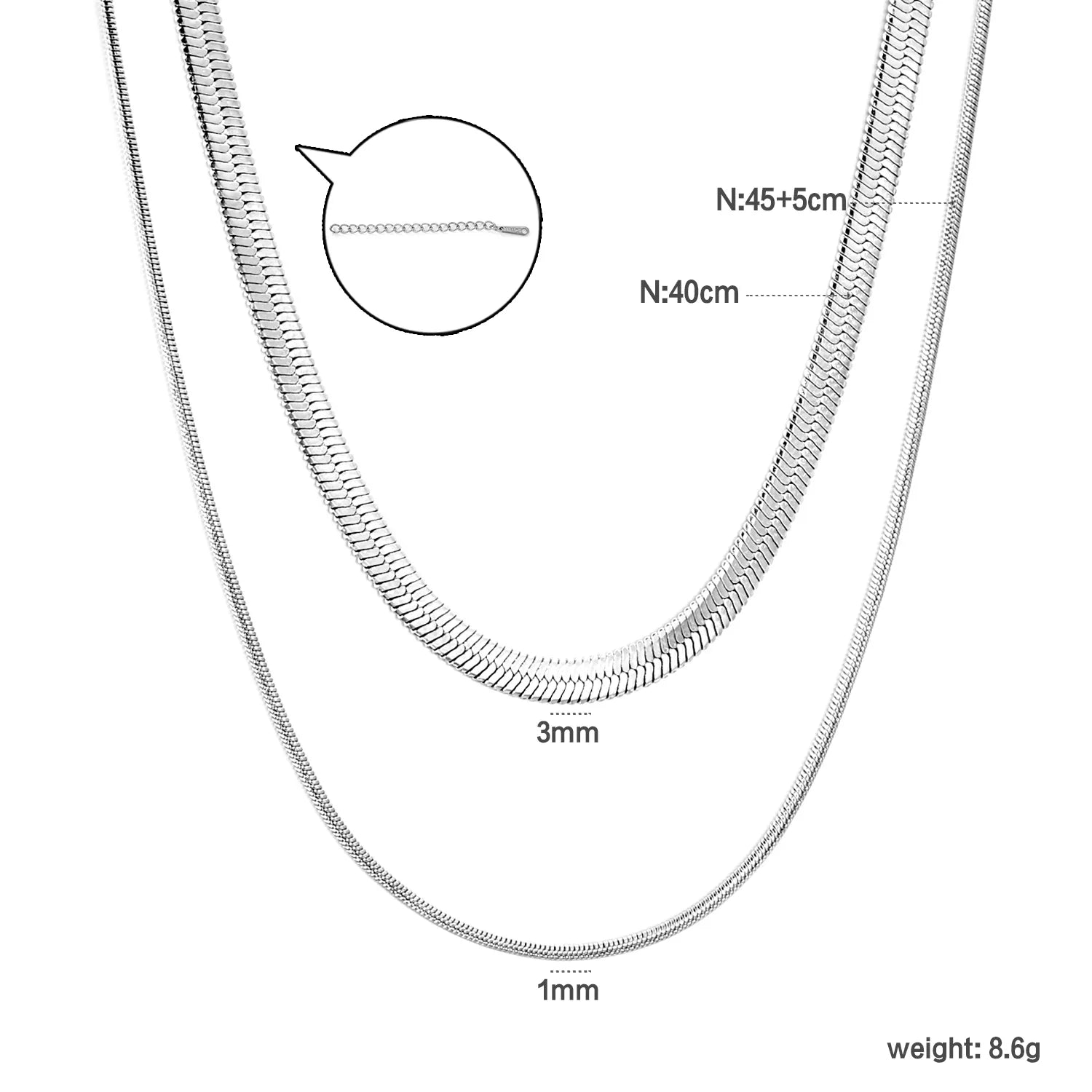 Item: 2-layer necklace (3mm wide snake chain + 1mm thin snake chain) | Size: N:40+45+5cm (adjustable) | MOQ 12