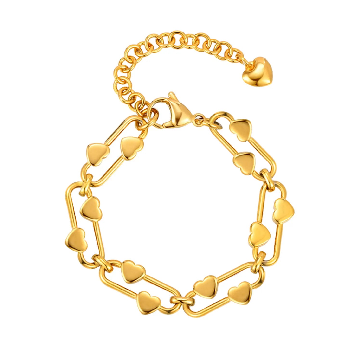 💖✨ 18K Gold/Silver & Two-Tone Heart-Link Bracelet – Bulk Wholesale Ready (MOQ 12) ✨💖