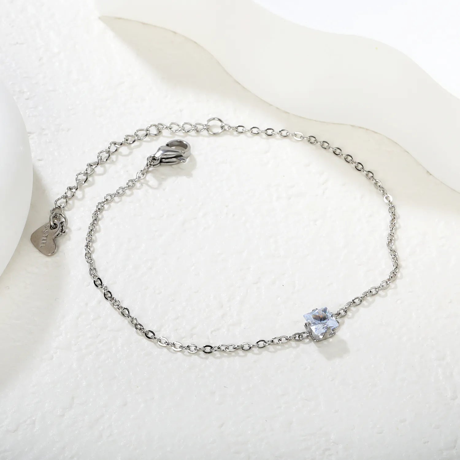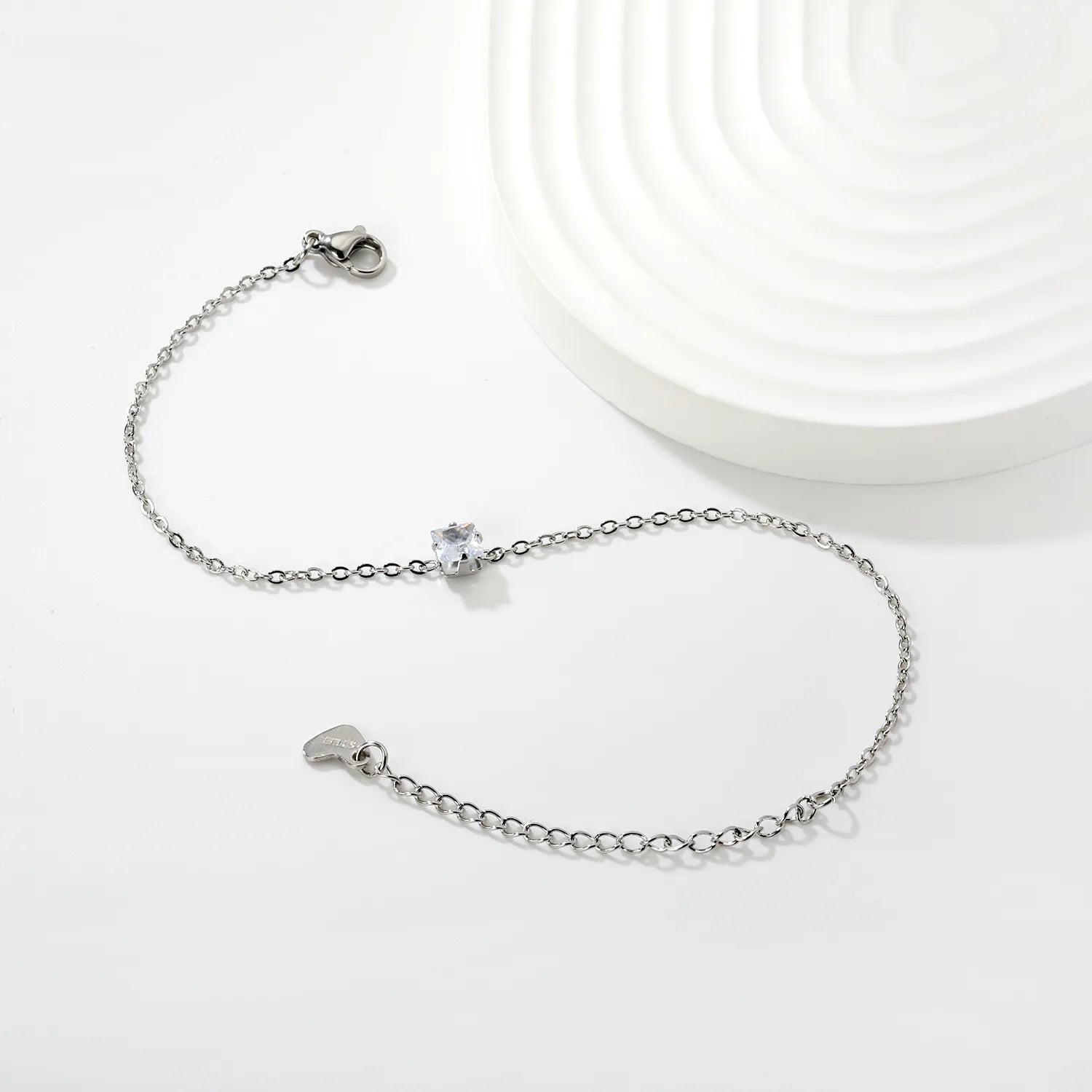 Wholesale Zircon and Heart Bracelet | 5.6mm White Zirconia Inlaid Design | 18+5cm Steel Chain | Hypoallergenic Jewelry